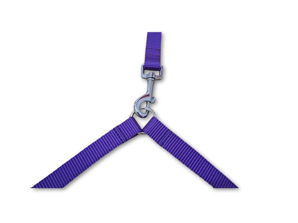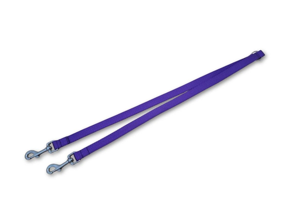 Fialovou rozdvojku Basic Duo šiji z polypropylenového popruhu šíře 20 nebo 25 mm. Popruh je pevný, lehký, odolný vůči vlhkosti i nečistotám a snadno se čistí. Rozdvojka má délku 60 cm a je vybavena kroužkem, ke kterému jednoduše připnete vodítko.