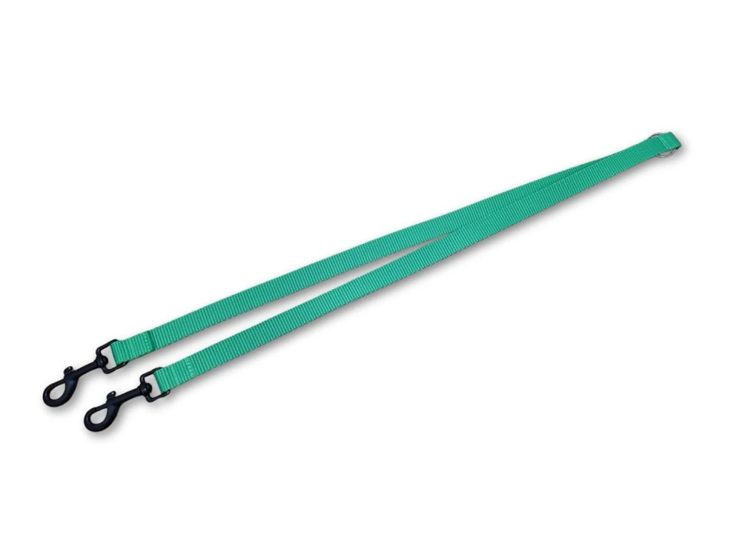 Neonově zelenou rozdvojku Basic Duo šiji z polypropylenového popruhu šíře 20 nebo 25 mm. Popruh je pevný, lehký, odolný vůči vlhkosti i nečistotám a snadno se čistí. Rozdvojka má délku 60 cm a je vybavena kroužkem, ke kterému jednoduše připnete vodítko.