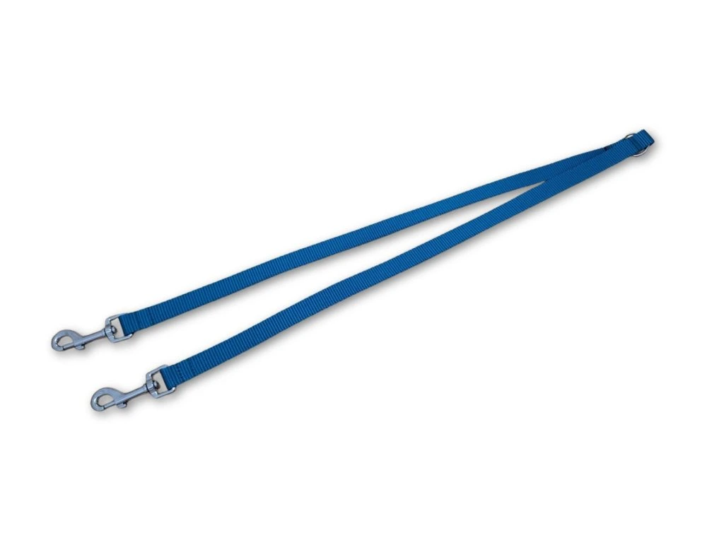 Vodítko pro dva psy z polypropylenového popruhu - rozdvojka v délce 60 cm, vodítko v délce 1,5 m. Ruční výroba, pevné karabiny dle velikosti psů, výběr z 10 barev. Ideální řešení pro pohodlné a bezpečné venčení dvou psů.