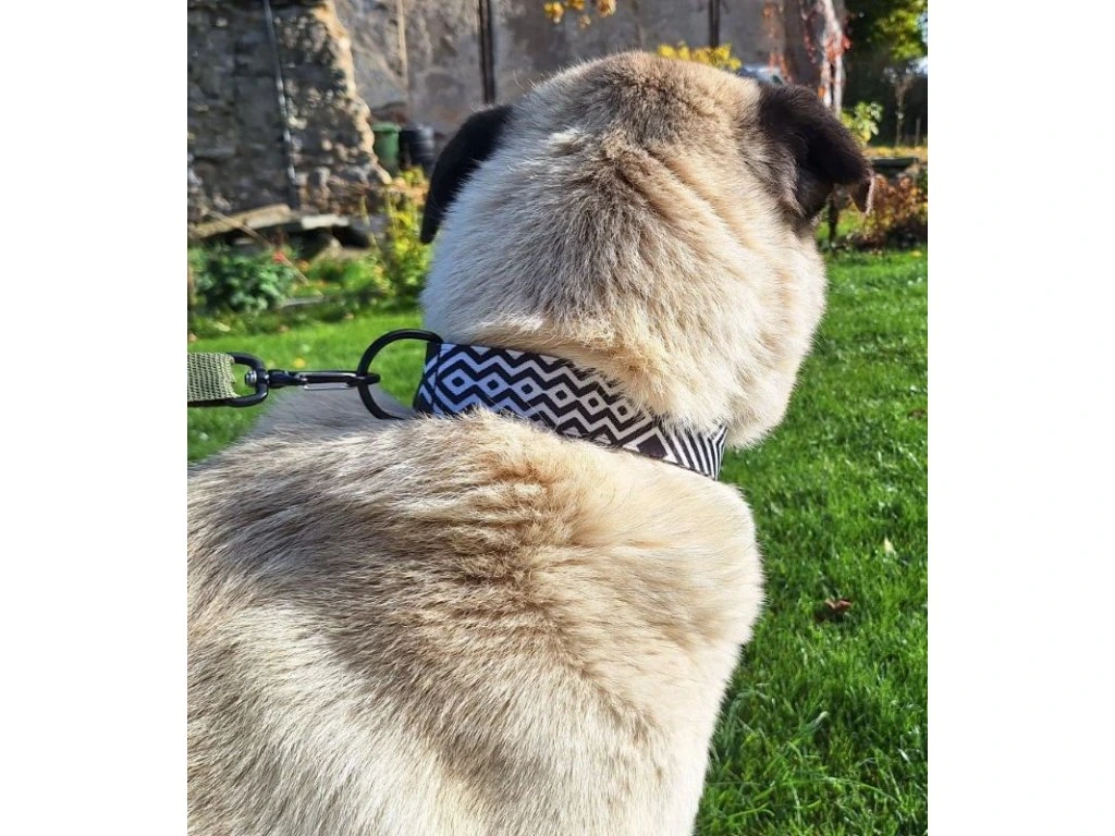 Popruhový obojek Comfort ve vzoru Labyrint šiji z příjemného polyesterového popruhu šíře 3,8 cm. Aby byl obojek skutečně pevný a odolný, šiji ho dvouvrstvý – dva popruhy jsou sešité k sobě. Popruh je rychleschnoucí, stálobarevný a zachovává svůj tvar i při každodenním nošení.
