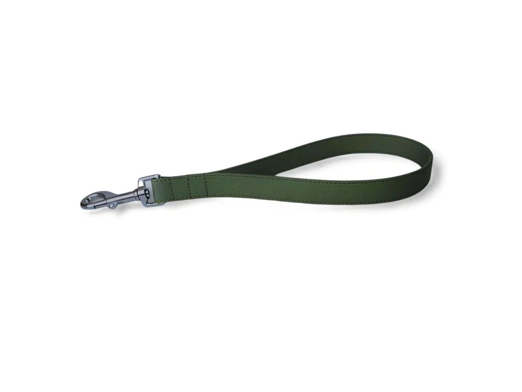 Khaki softshellovou couračku Active šiji z lehkého softshellu se všitým polypropylenovým popruhem šíře 20 nebo 25 mm. Poutko je měkké, příjemné do ruky a ani při náhlém tahu neřeže do dlaně. Délka 30 cm nedává psovi prostor k rozběhu ani k nečekanému trhnutí – přesně to oceníte v situacích, kdy potřebujete mít psa okamžitě u sebe.