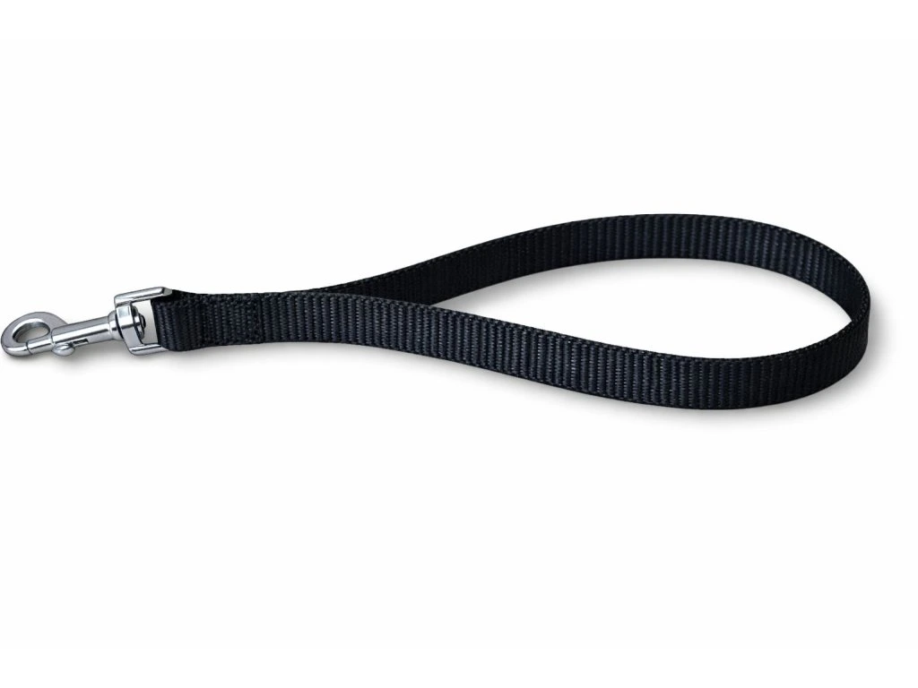 Krátké poutkové vodítko – couračka z odolného polypropylenu o délce 30 cm. Ideální pro rychlou kontrolu psa ve městě, při výcviku nebo manipulaci. Lehké, pevné, snadno udržovatelné a vhodné pro střední a velká plemena. Ruční výroba.
