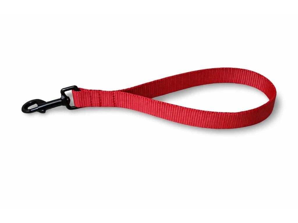 Krátké poutkové vodítko – couračka z odolného polypropylenu o délce 30 cm. Ideální pro rychlou kontrolu psa ve městě, při výcviku nebo manipulaci. Lehké, pevné, snadno udržovatelné a vhodné pro střední a velká plemena. Ruční výroba.