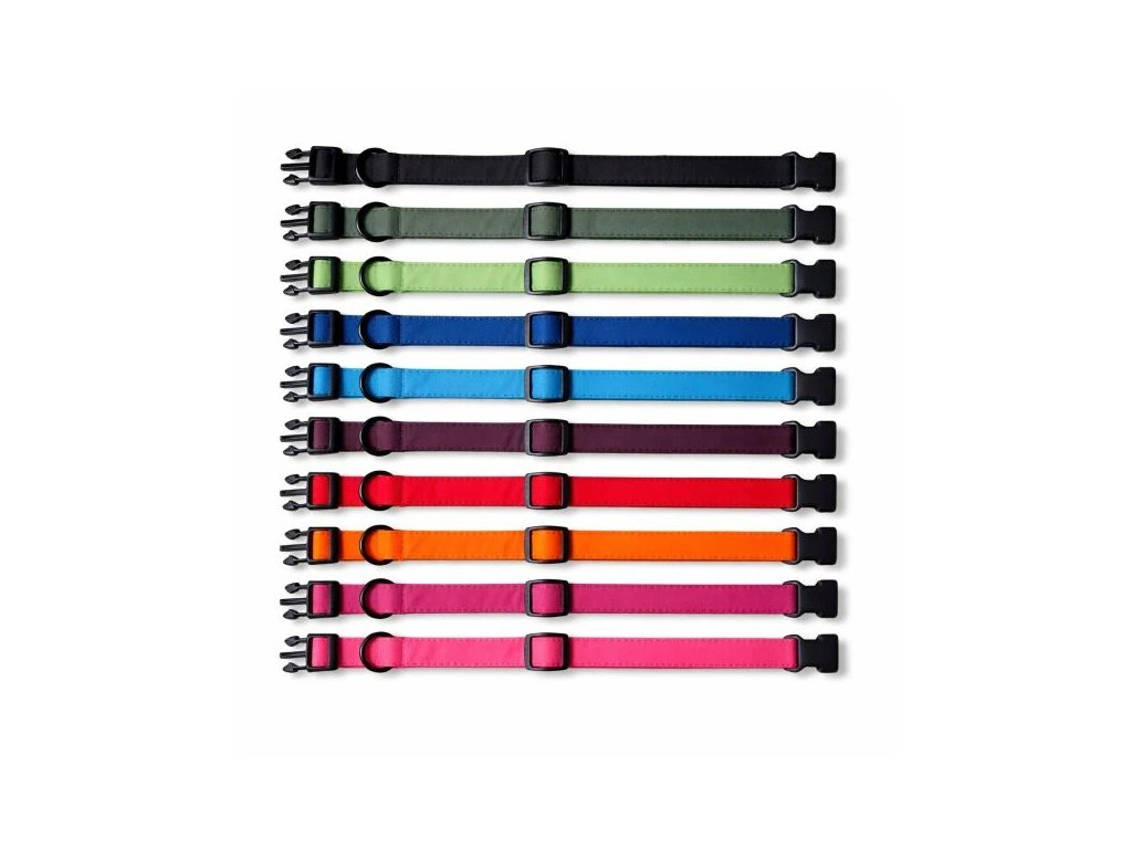 Plastová spona je mrazuvzdorná a spolehlivá proti samovolnému rozepnutí. Posuvná spona umožňuje přesné nastavení délky, takže obojek může se štěnětem kousek povyrůst. Černý ocelový polokroužek slouží k připnutí vodítka.