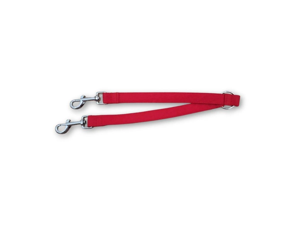 Červenou rozdvojku Active Duo šiji z lehkého softshellu s všitým polypropylenovým popruhem šíře 2 nebo 2,5 cm. Softshell je příjemný do ruky, nedře do dlaně ani při větším tahu a odolává vlhkosti i nečistotám. Rozdvojka je délky 60 cm s kroužkem, ke kterému jednoduše připnete vodítko.