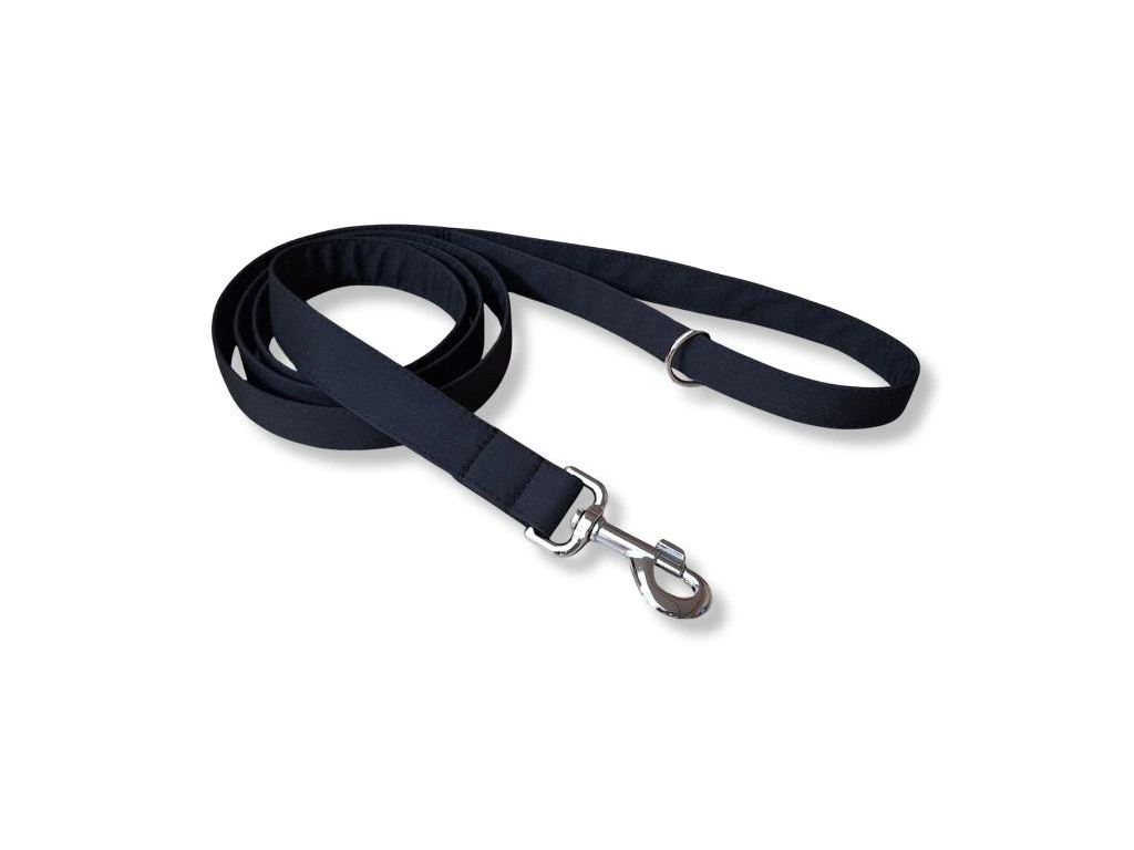 Černé softshellové vodítko Active šiji z lehkého softshellu s všitým polypropylenovým popruhem šíře 2 nebo 2,5 cm. Softshell je příjemný do ruky, nedře do dlaně ani při větším tahu a odolává vlhkosti i nečistotám. Vodítko si zachovává tvar i při každodenním používání.
