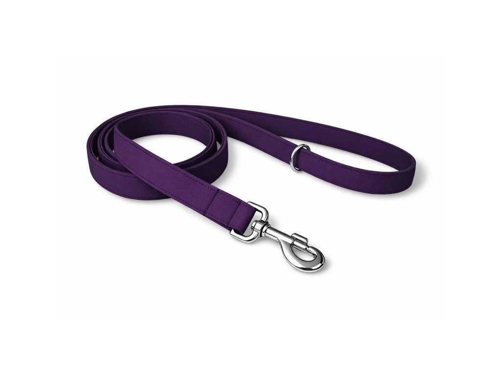 Fialové softshellové vodítko Active šiji z lehkého softshellu s všitým polypropylenovým popruhem šíře 2 nebo 2,5 cm. Softshell je příjemný do ruky, nedře do dlaně ani při větším tahu a odolává vlhkosti i nečistotám. Vodítko si zachovává tvar i při každodenním používání.