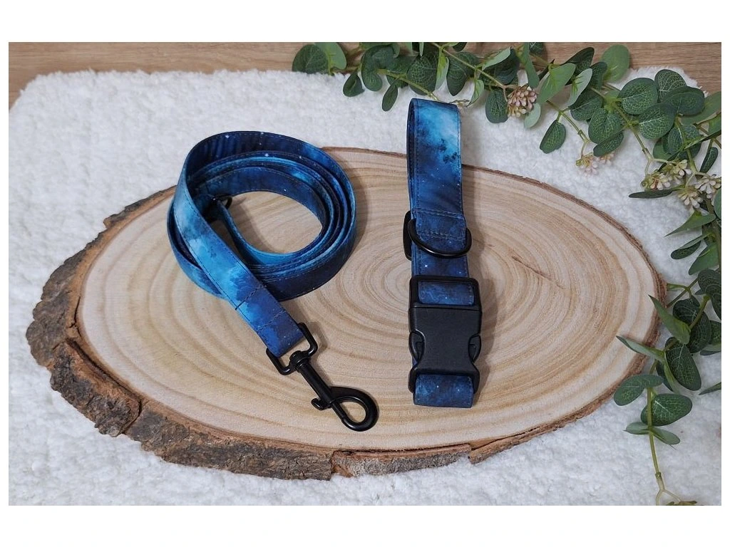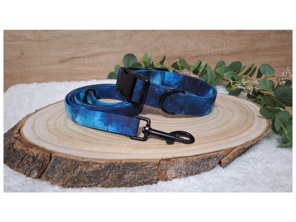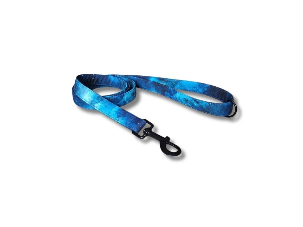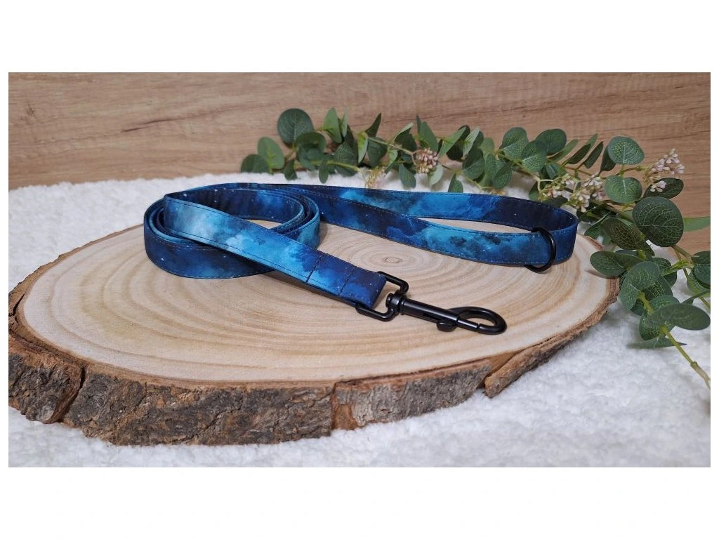 Softshellové vodítko Active, ve vzoru Nightsky, šiji z lehkého softshellu s všitým polypropylenovým popruhem šíře 2 nebo 2,5 cm. Softshell je příjemný do ruky, nedře do dlaně ani při větším tahu a odolává vlhkosti i nečistotám. Vodítko si zachovává tvar i při každodenním používání.