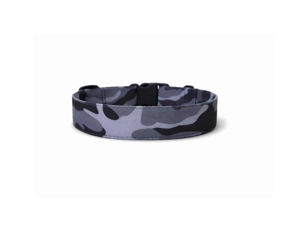 Softshellový obojek Active, ve vzoru Šedý maskáč, šiji z lehkého a měkkého softshellu se všitým polypropylenovým popruhem. Softshell je šetrný k srsti i kůži psa, nijak neodírá a zároveň odolává vlhkosti a nečistotám. Obojek rychle schne, drží tvar a vypadá skvěle i po dlouhém každodenním nošení.