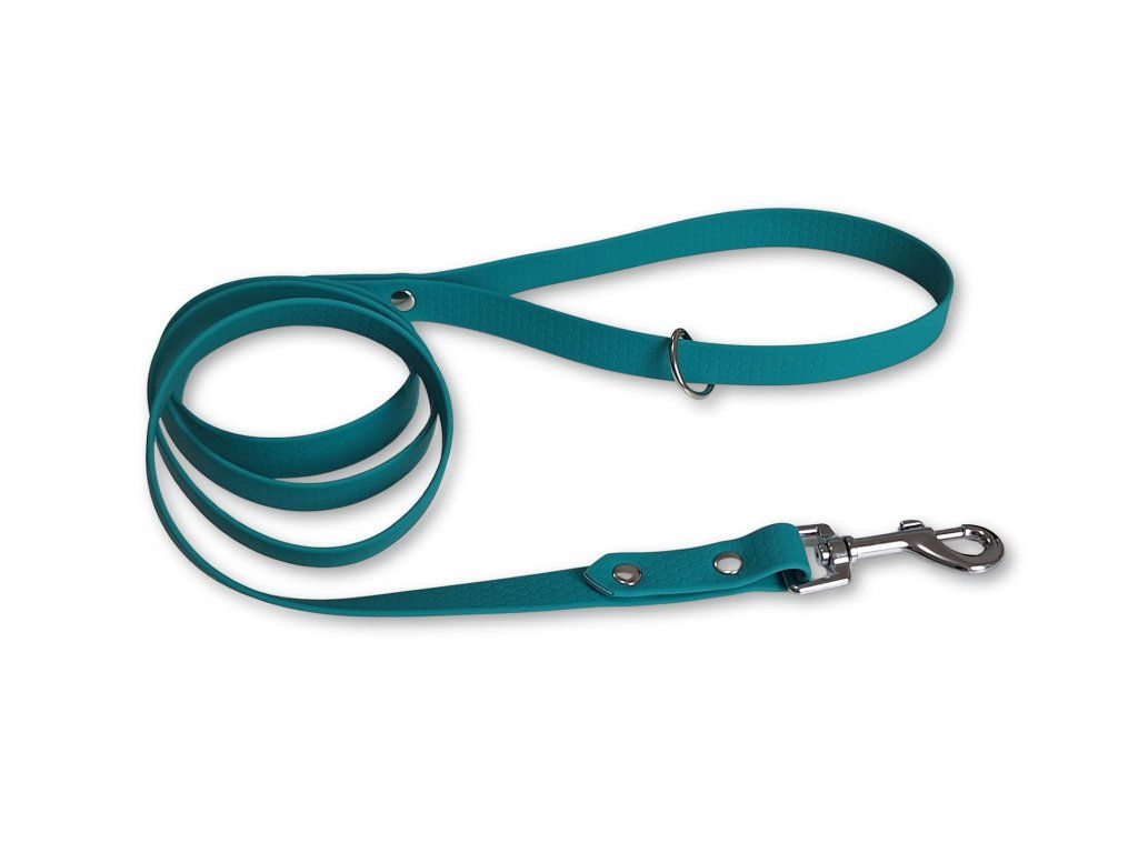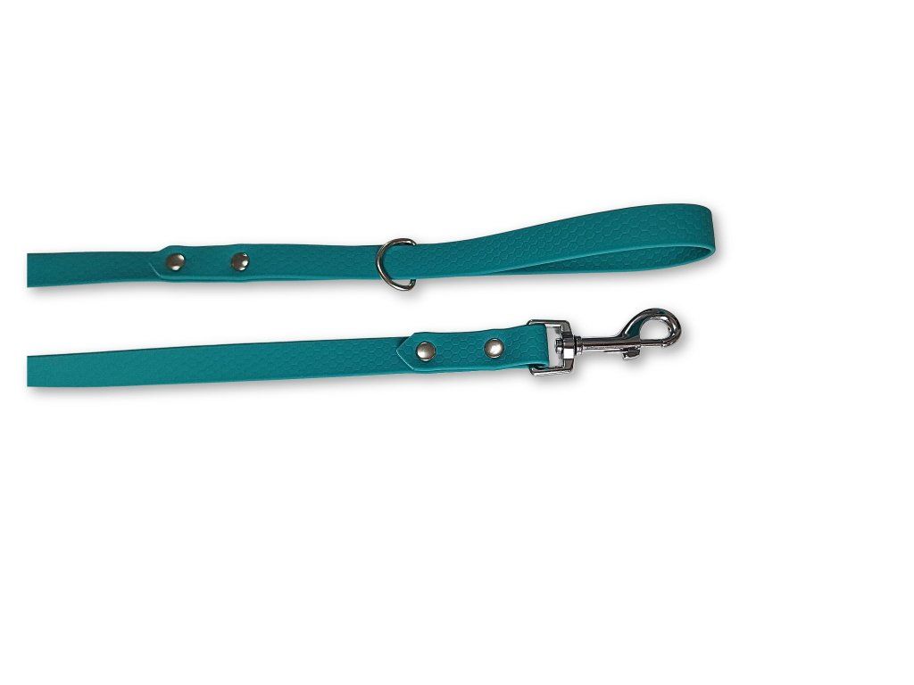 Odolné a stylové vodítko z voděodolného Hexa popruhu v pastelově zelené barvě je ideální volbou pro každodenní použití i náročnější podmínky. Nevadí mu voda, bláto ani déšť – neabsorbuje vlhkost, nezapáchá a velmi snadno se udržuje.
